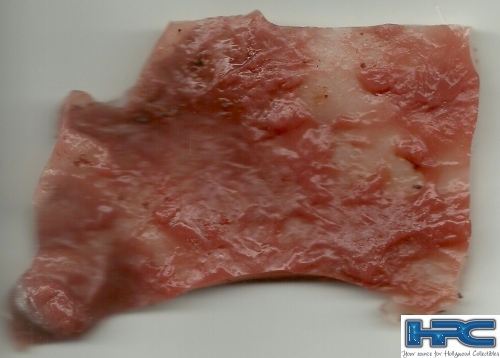 This 2 1/2″X 4″ piece of bloody flesh (prop flesh) is from Jake’s body. Jake was in front of Evan’s (Chester Bennington) car in this scene. We purchased it from Raybin Management. Piece #1 .