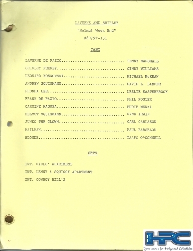 LAVERNE & SHIRLEY: "Helmut Weekend" Script quantity