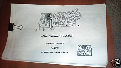 ORIGINAL MARVEL FILMS SPIDER-MAN STORY BOARD DEPARTMENT COPY – STORY BOARD #9301TITLED: ALIEN COSTUME & HAS 134 PAGES!This is the ORIGINAL Department Copy!There is 134 pages of cartoon story board with Spider-Man!!This is the real thing…. not a Kinkos copy! This is the ORIGINAL COPY!