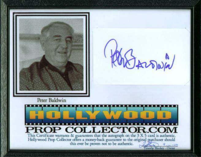 This 3″ x 5″ card has Peter Baldwin’s hand signed autograph. Card was signed with blue Sharpie. It comes in a 8″x 10″ frame with a picture of him and comes with our money-back guarantee. This makes a great gift or would be a great addition to your collection or to hang in the office or den! All of our autographs are obtained from reputable autograph dealers or by us in person.