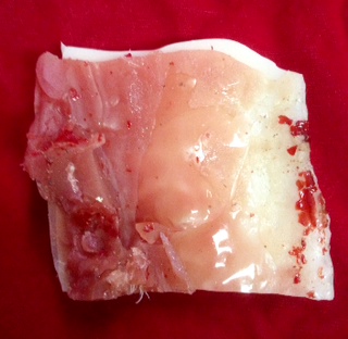 The beautiful and sexy Betsy Russell plays – Jigsaw’s Wife in the SAW movies. Jill’s body was ripped apart in the Hoffman Go-Cart Trap Scene in SAW: The Final Chapter (SAW 3D). This is a bloody piece of Jill’s body flesh! We purchased it from Raybin Management. It comes with the original C.O.A from Twisted PicturesAt this time, this item is NOT for sale but if the right offer is made we will consider it