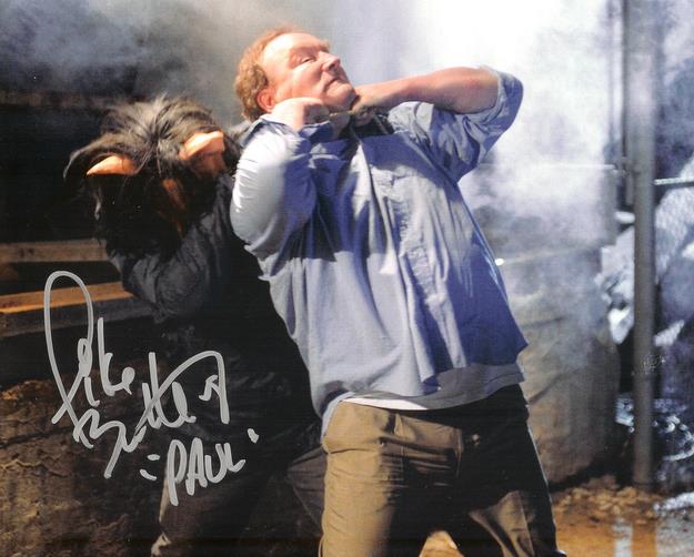 MIKE BUTTERS (“PAUL” THE RAZOR WIRE MAN) SIGNED THIS 8X10 INCH HEAVYWEIGHT COLOR GLOSSY PHOTO: MIKE BUTTERS “PAUL”. THE AUTOGRAPH WAS SIGNED USING A SILVER SHARPIE PEN. THE AUTOGRAPH IS BOLD AND STRONG.